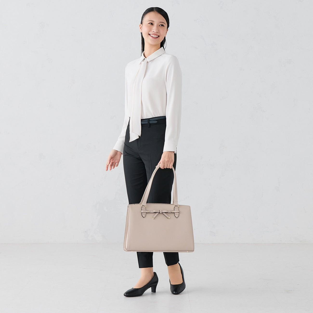 蝴蝶結為可拆式,隨心變換風格,職場通勤、日常皆實用。