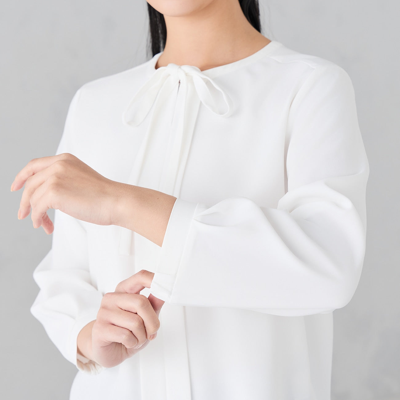 附领结缎带与金属领饰,随心打造干练职场造型或柔美穿搭,亦可拆下所有装饰,呈现简约俐落风格。
