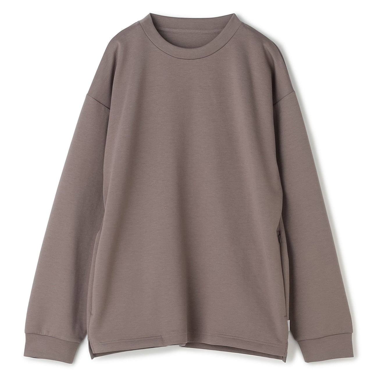 长袖、圆领、长款、侧开衩高腰下摆、拉链腰袋、自织袖口