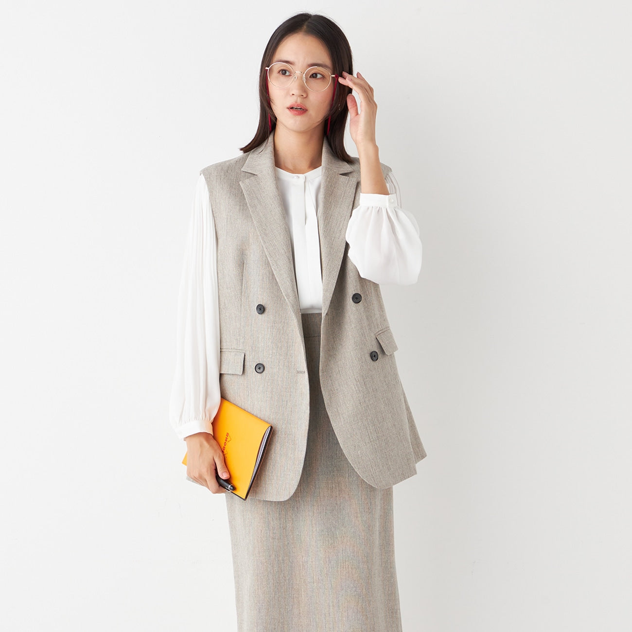 - 这是一款用于搭配套装的马甲,具有类似羊毛的混色外观。它用途广泛,可单独穿着,与任何颜色的衣服搭配都很吸引人。