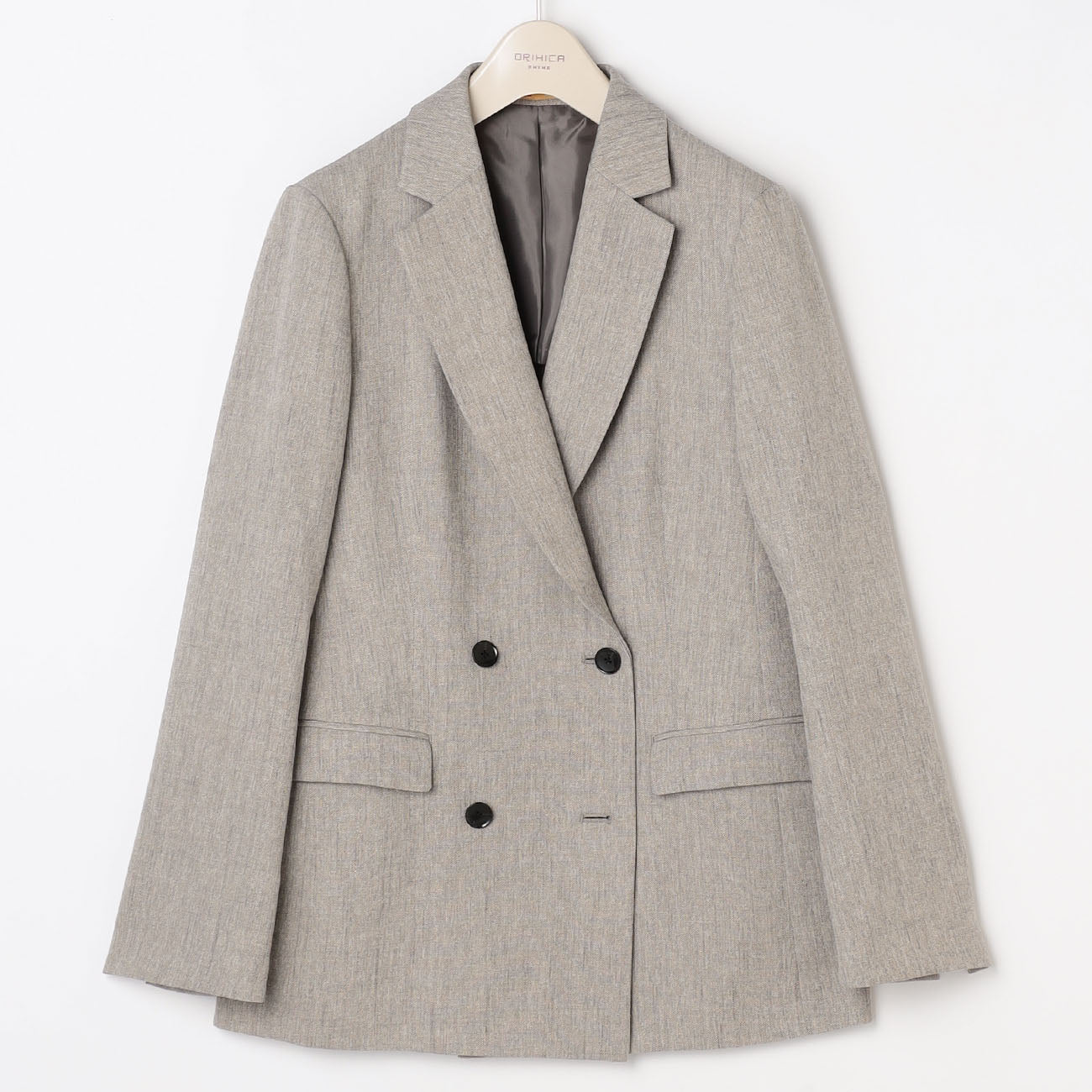 THE THIRD SUITS双排扣梭织纹西装外套 米