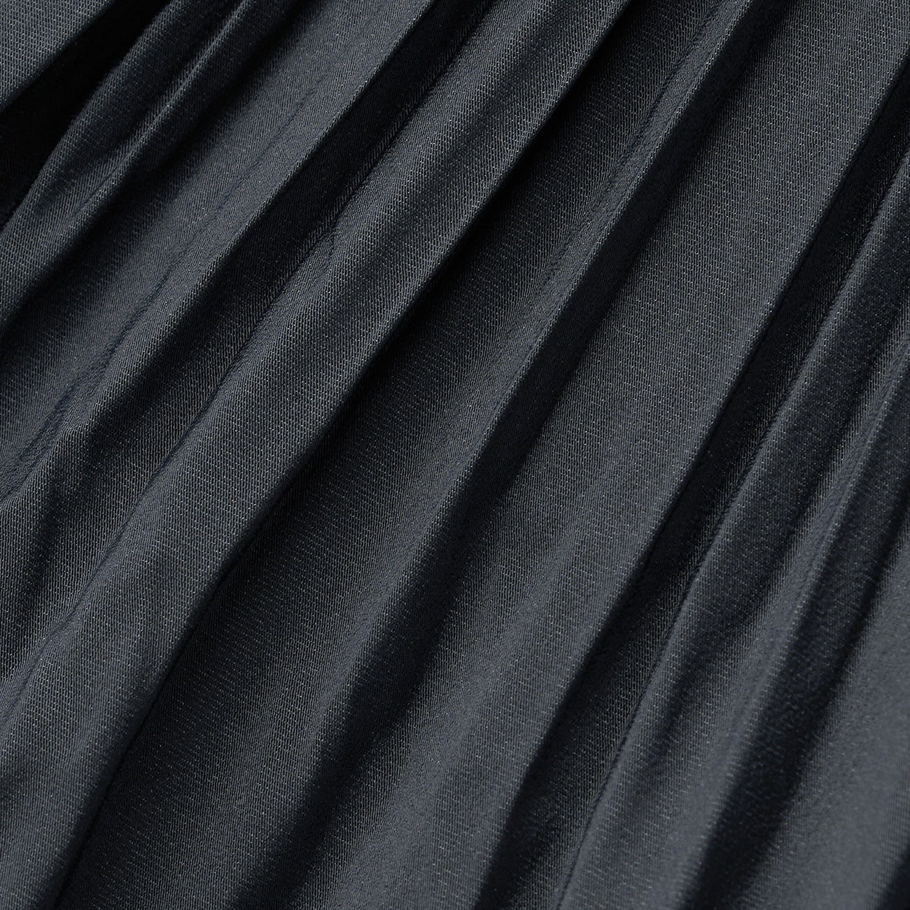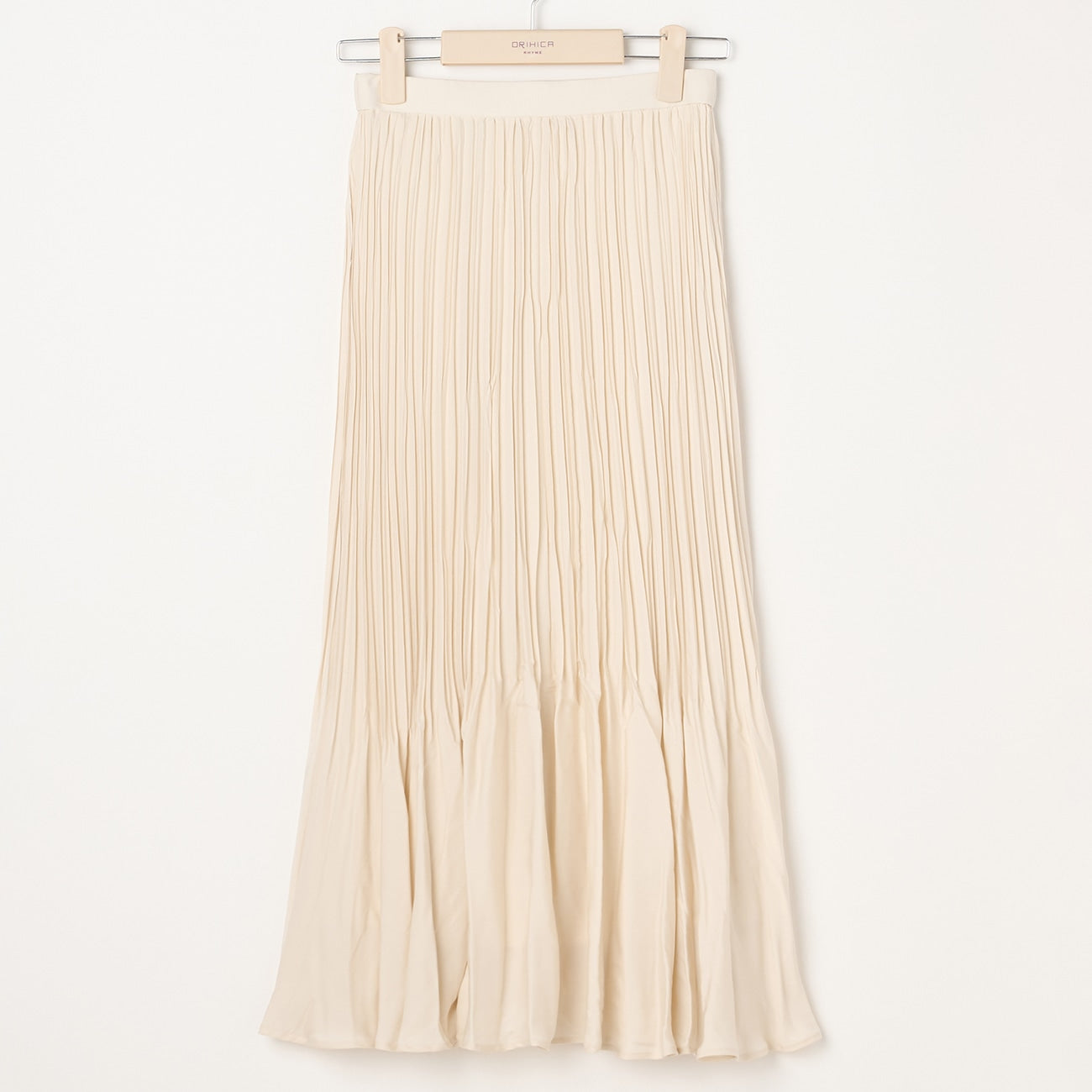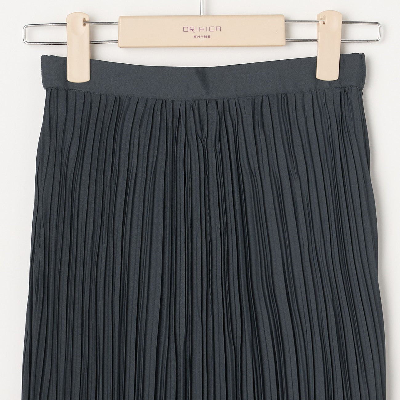 - Pleated skirt with light material creates a vertical line for a style-up effect.
