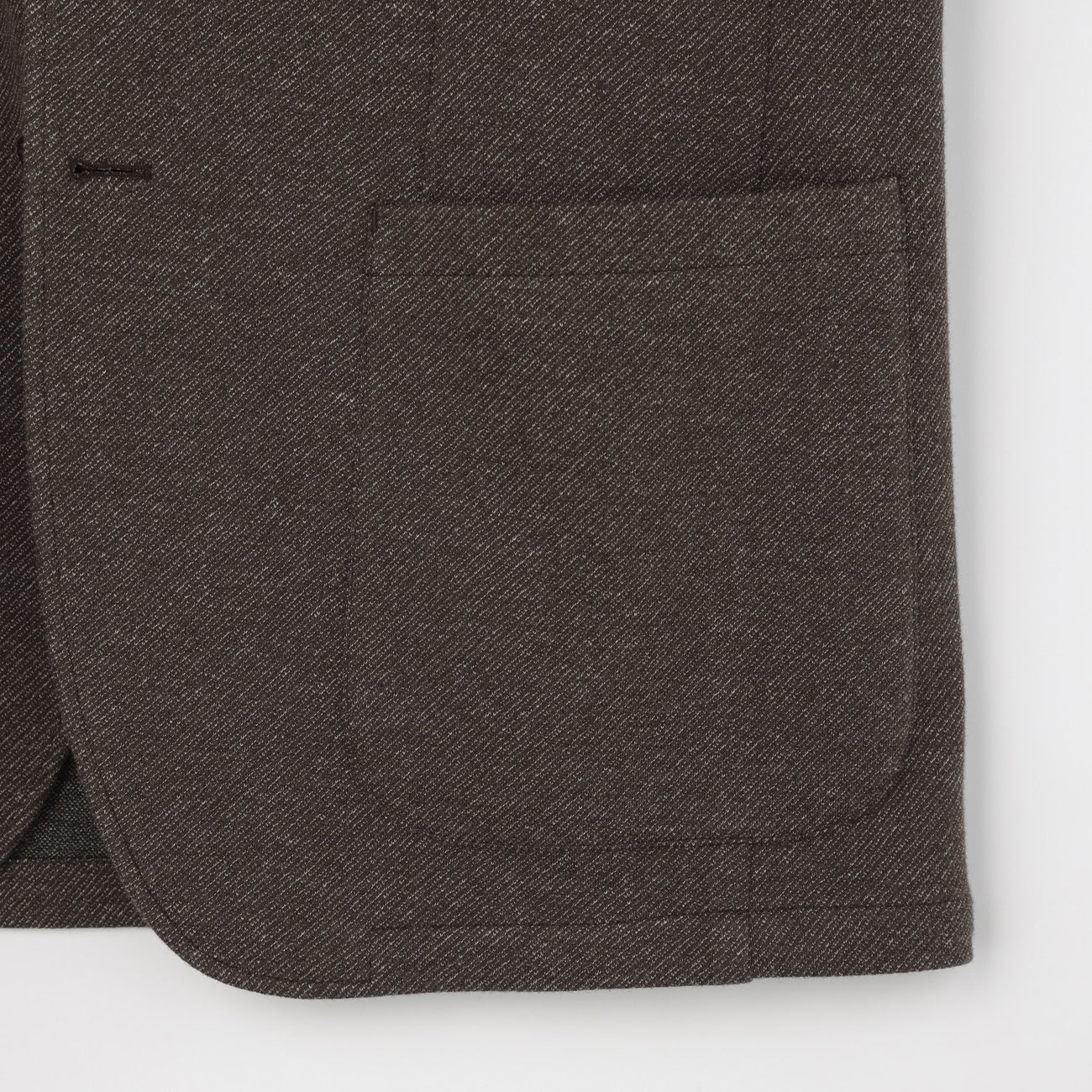 - 两粒扣开襟,无开衩,平袖,半衬里,贴袋。