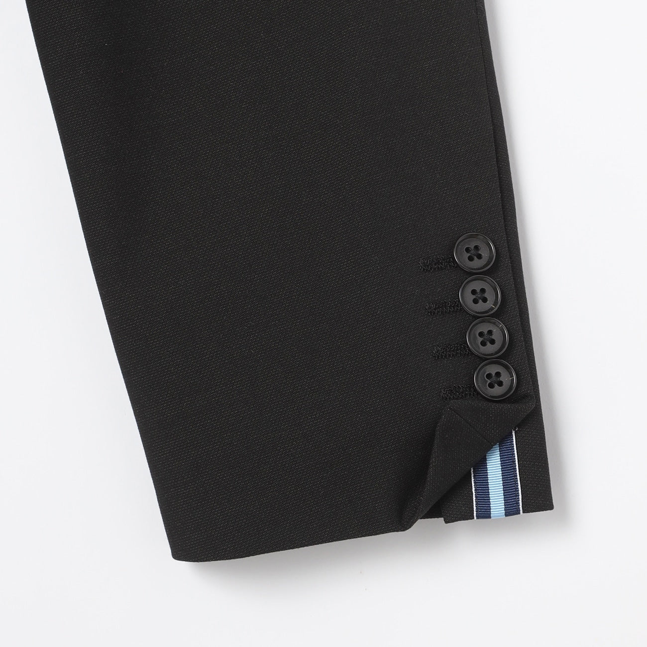 ・西装外套:2颗钮扣、背开中叉、袖口假扣眼、半衬里。