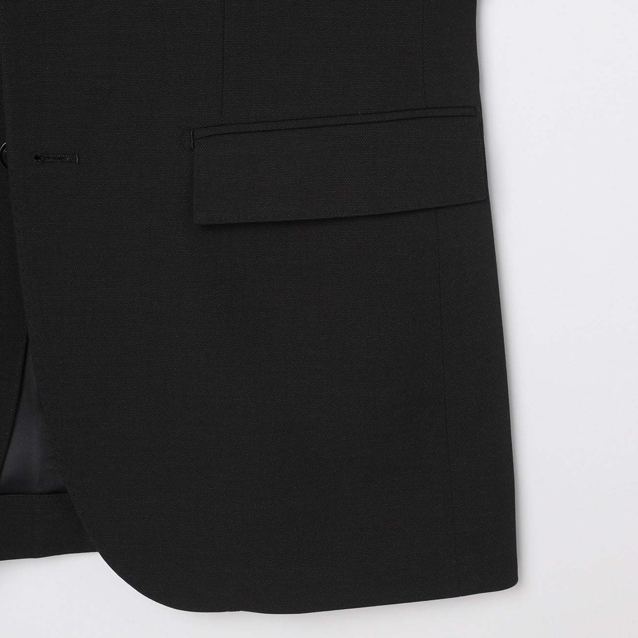 - 2-button, center vent, decorative sleeve buttons, half-lined.