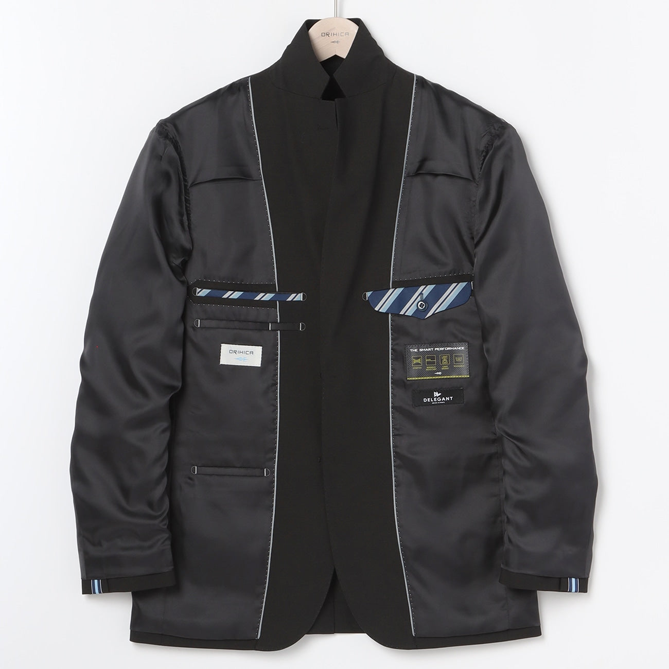 - Tailored at a suit factory for a three-dimensional fit that looks neat.