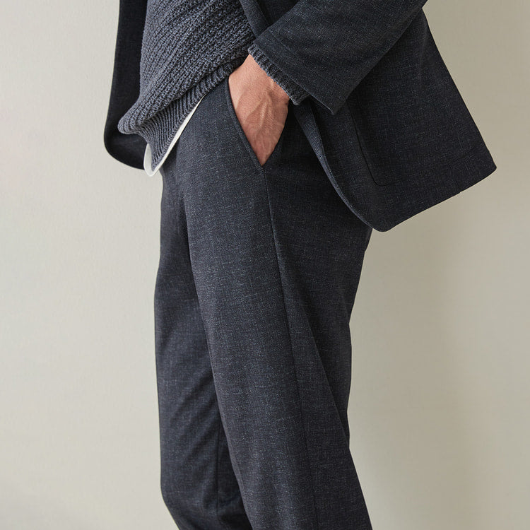 Next-generation "THE THIRD SUITS" denim-like pants for versatile styling.