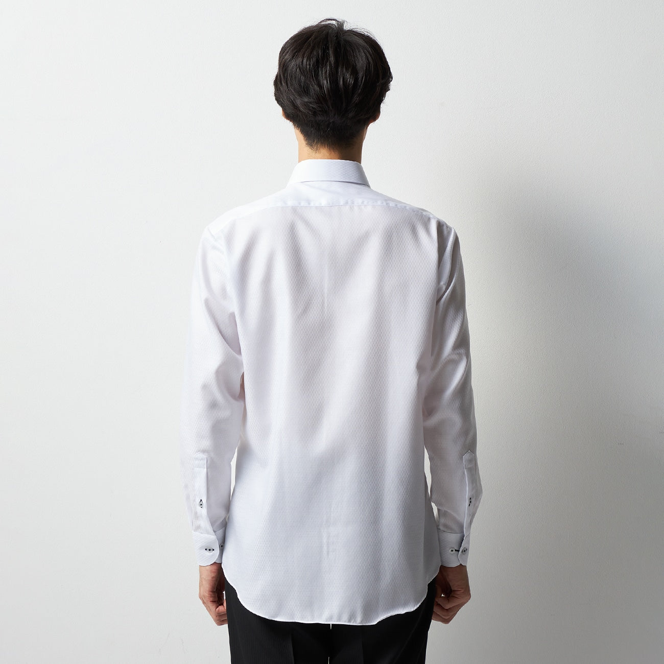 - Water-soluble interlining in the collar band for a soft feel after washing.