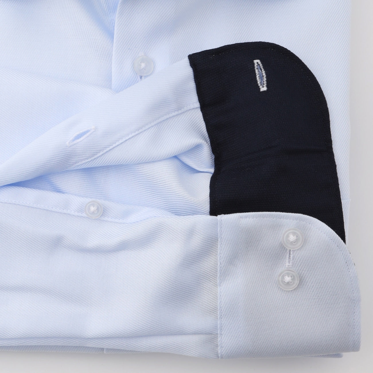 - Water-soluble interlining in the collar band for a soft feel after washing.