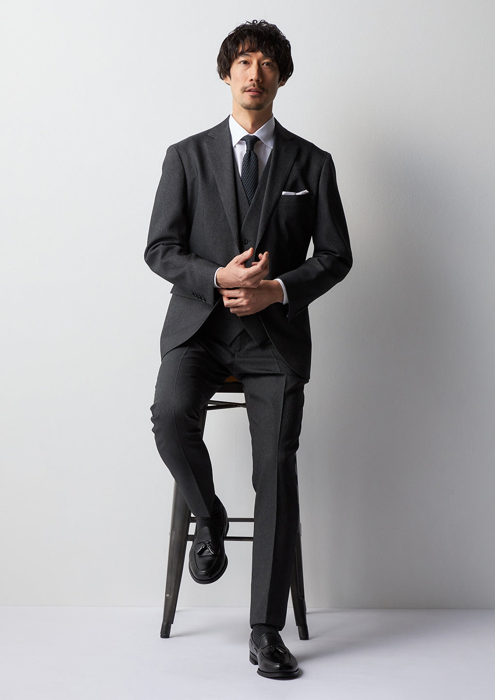 Knit tie suitable for office casual style, combining casualness with neatness.