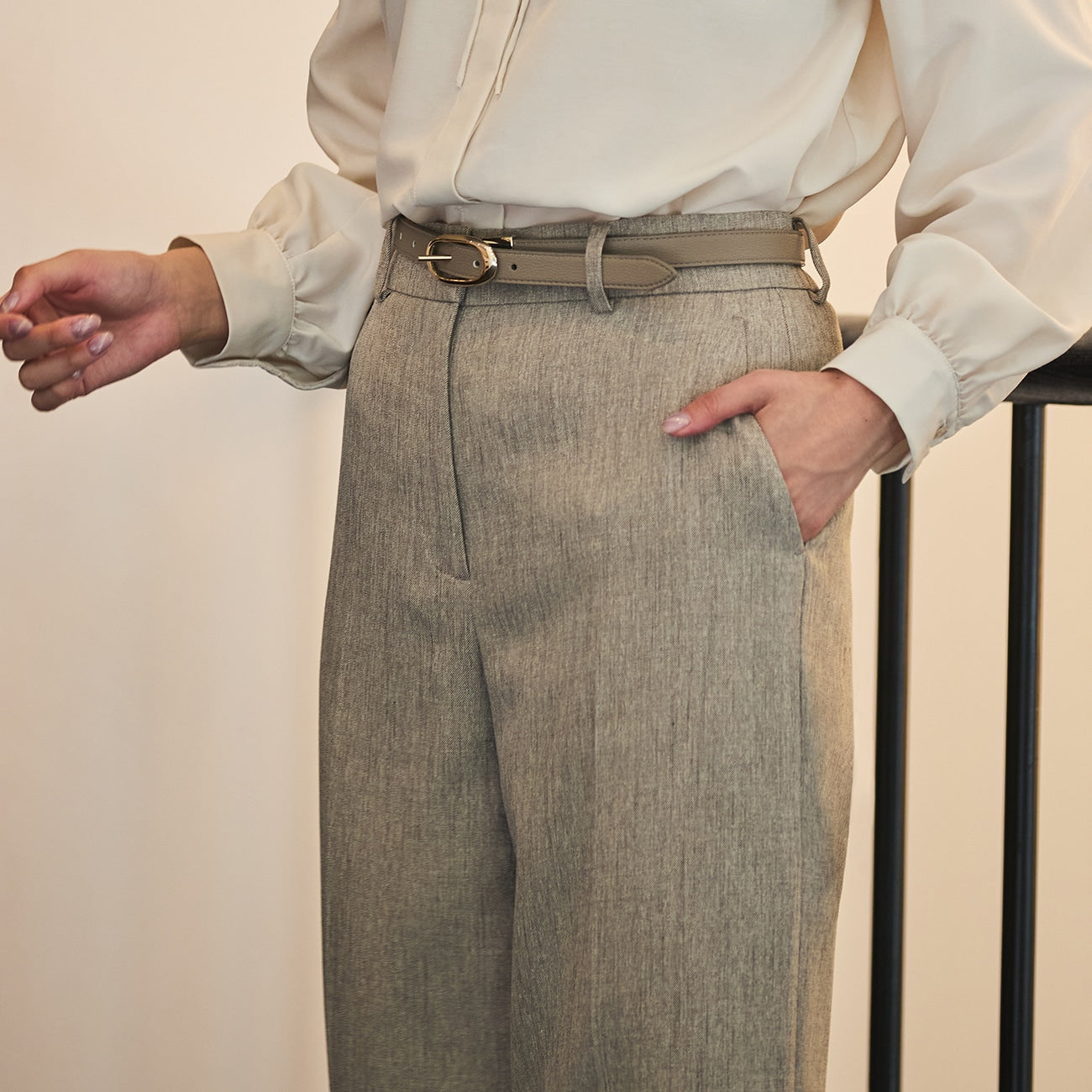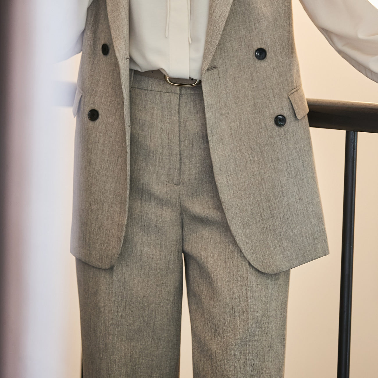 - 搭配套装的裤子具有类似羊毛的楠木色外观。它用途广泛,既可单独穿着,也可与任何颜色的衣服搭配。