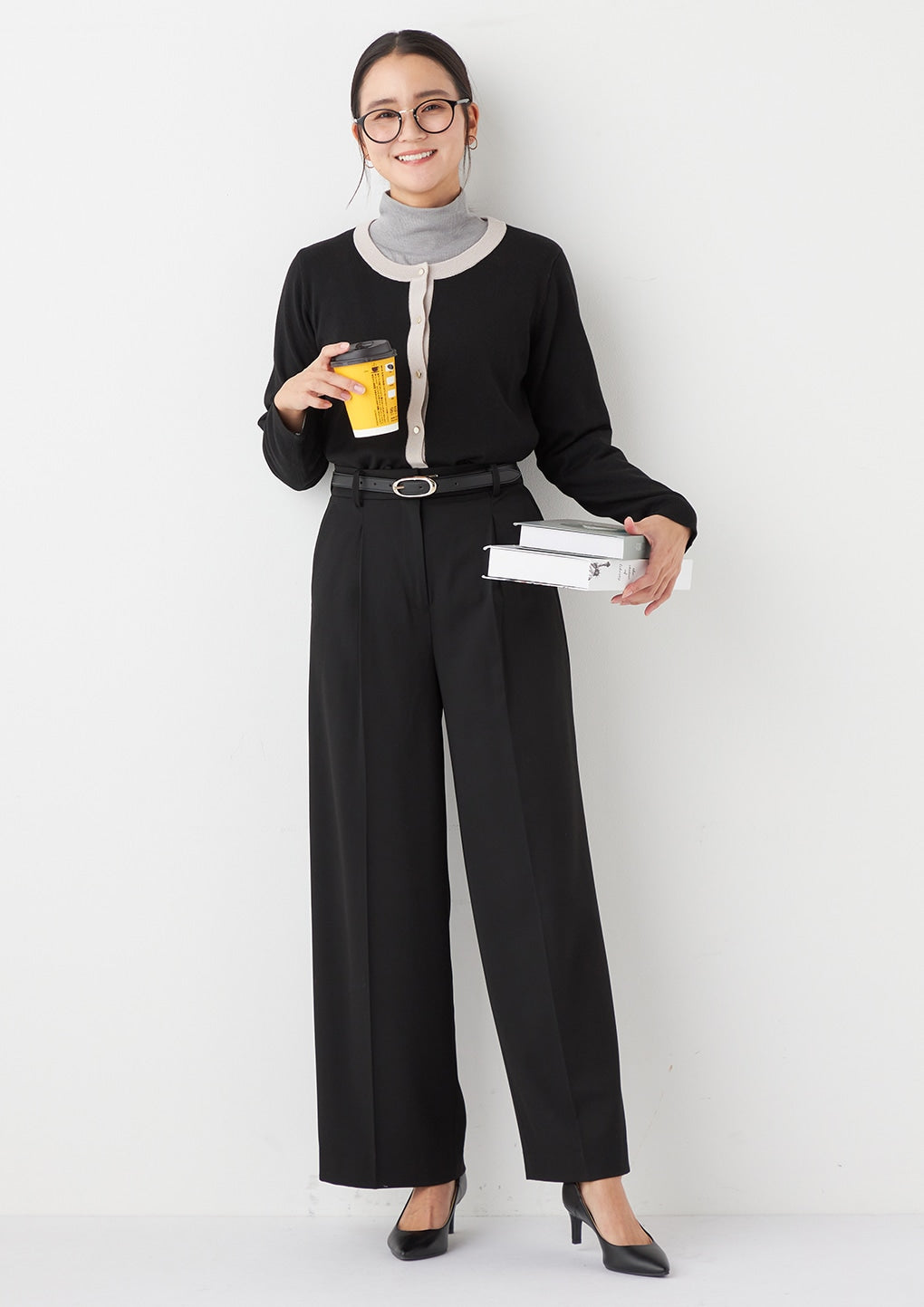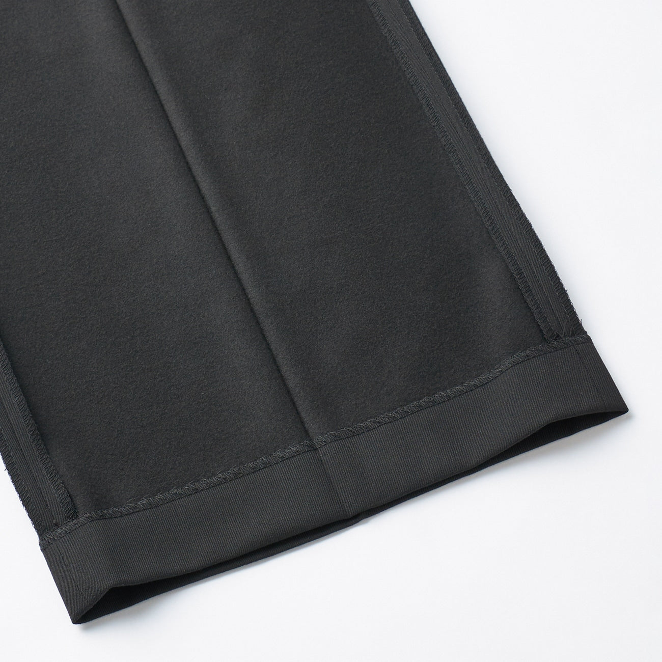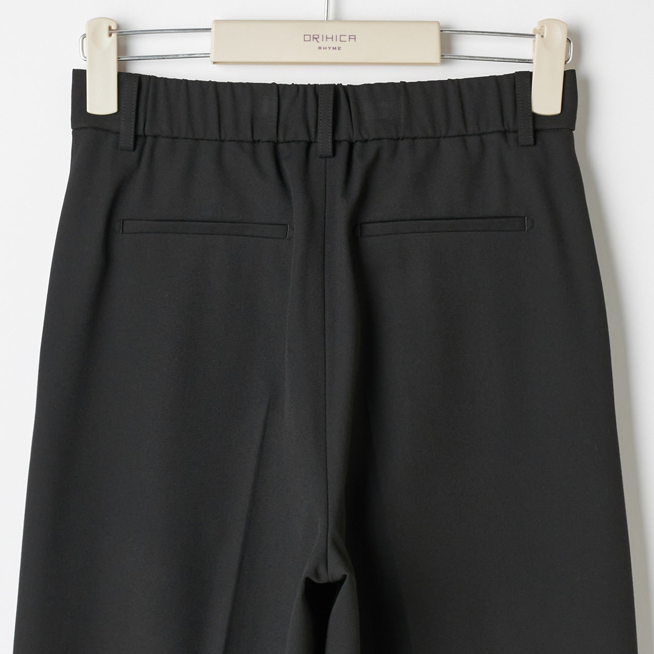 - 高腰设计从腰部到下摆都能在视觉上拉长腿部线条。中间压线的直针褶强调了中心线,产生了额外的拉长腿部的效果。