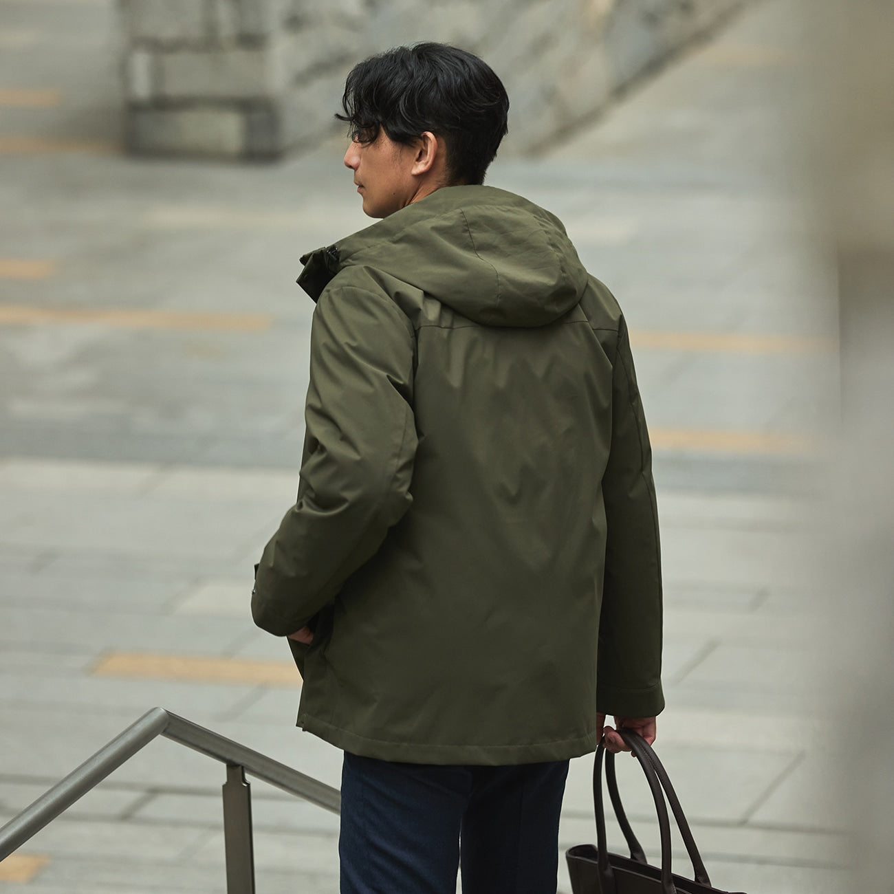 ・登山外套简约风格,内搭西装也好看。
