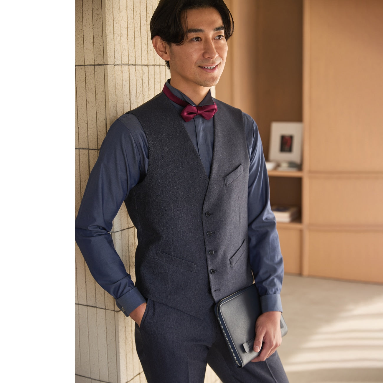 ・可單穿,亦可搭配西裝外套與西裝褲呈現經典三件式西裝。