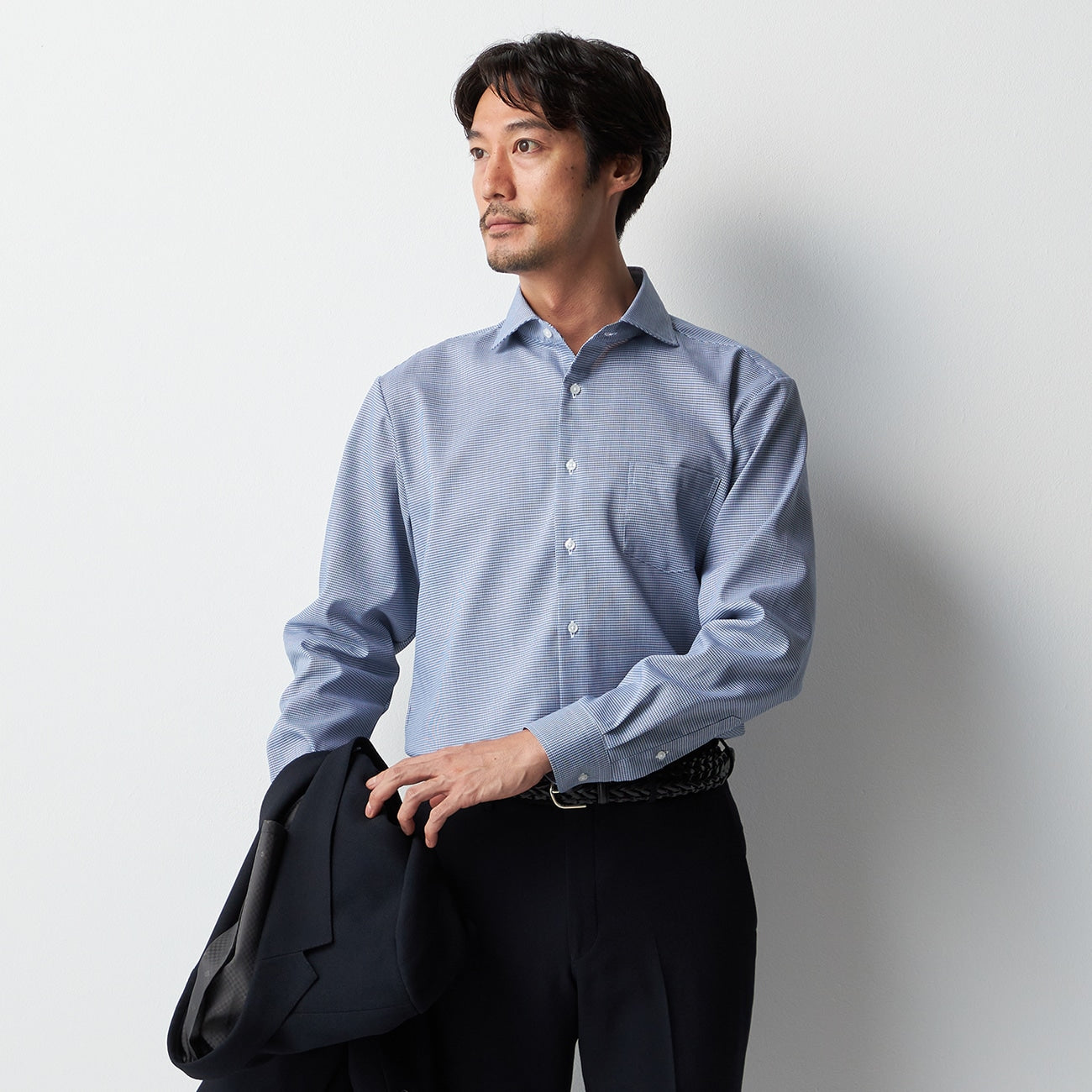・第二颗钮扣位置略高,即使不扣第一颗钮扣,仍能维持俐落领型。