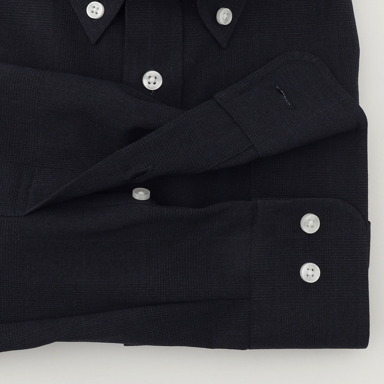 - Balanced button positioning ensures the collar doesn't spread too wide when the top button is undone.