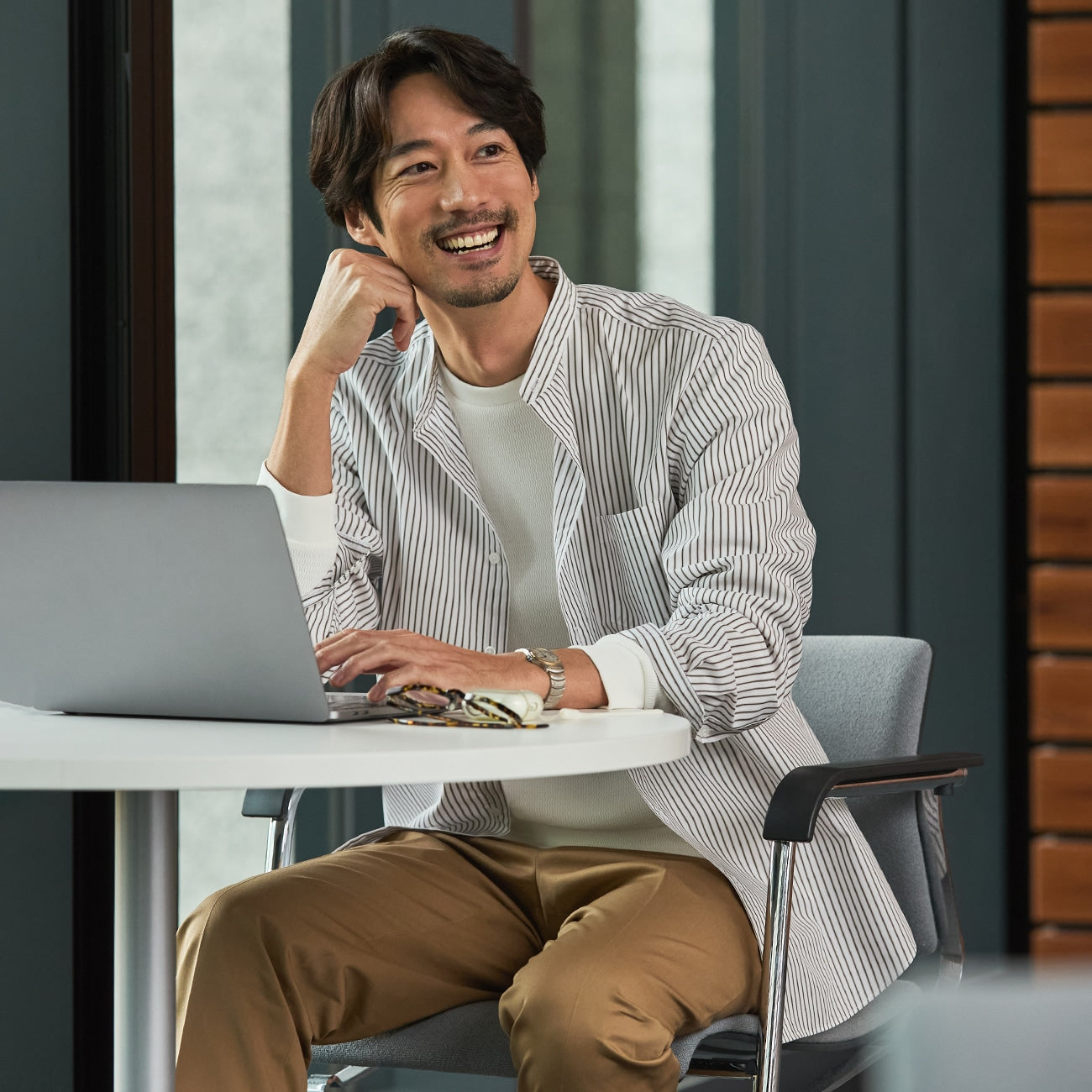 ・衣長設計恰到好處,不紮休閒率性,紮進褲頭則顯俐落正式。