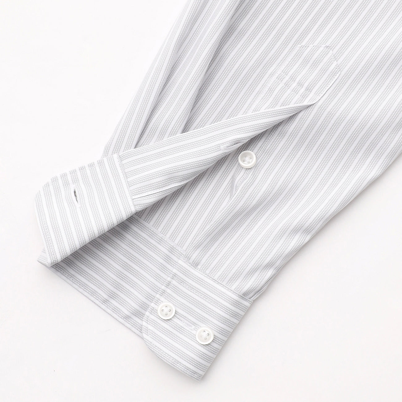 - Balanced button positioning ensures the collar doesn't spread too wide when the top button is undone.