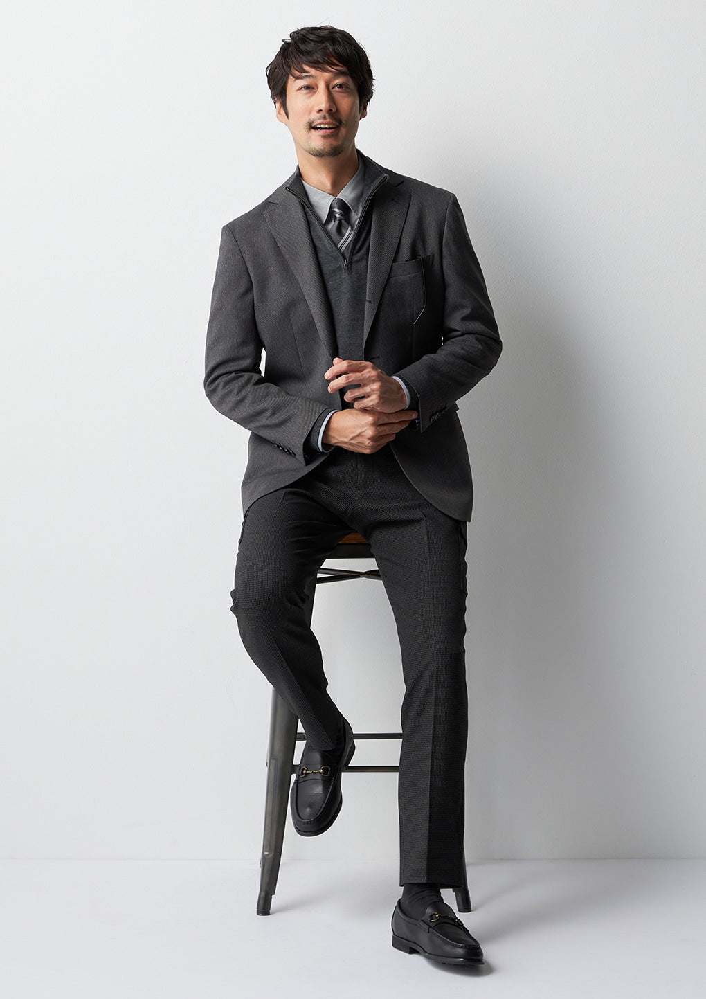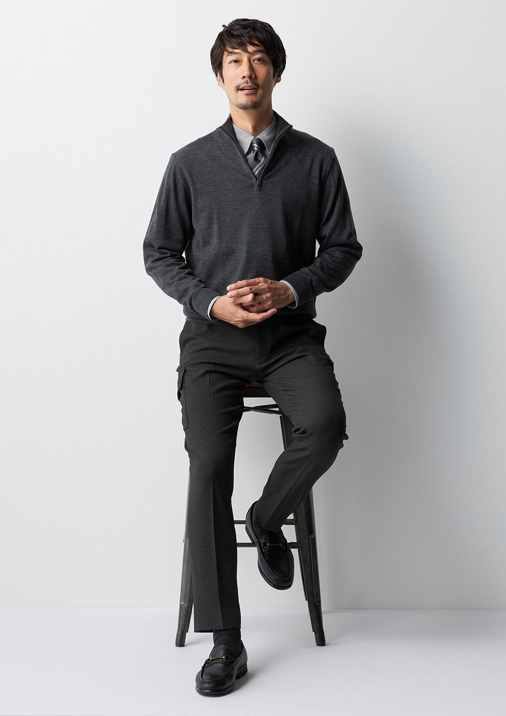 ・质感高密度针织衫,外搭西装外套也正式得体。