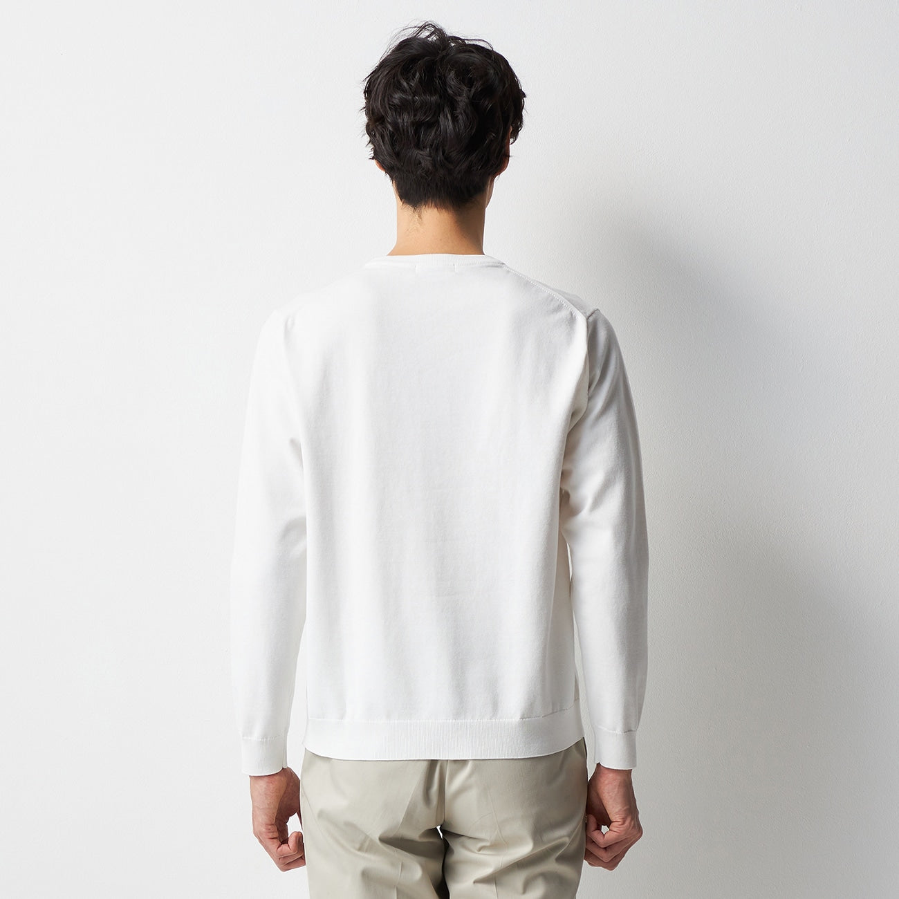 Plating knit sweater combining the texture of cotton with the quick-drying property of polyester.