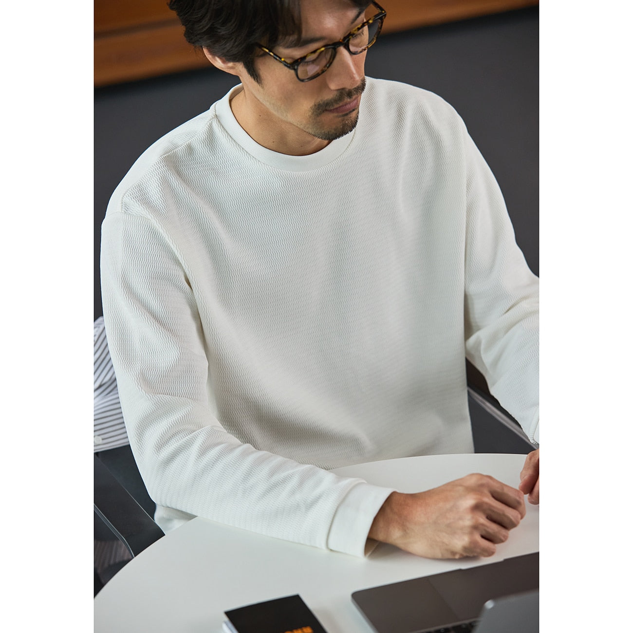 Elegant and mature looking T-shirt with wave-like surface texture.