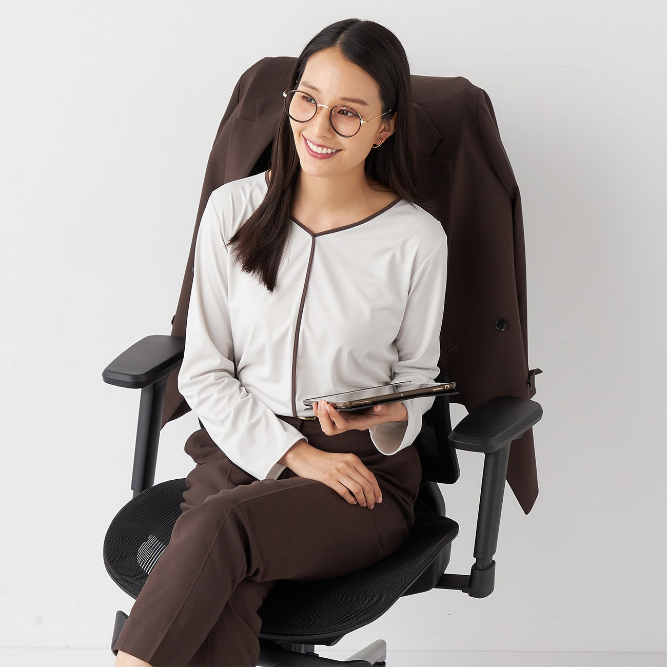 经编针织材质,弹性佳、舒适免烫女装上衣