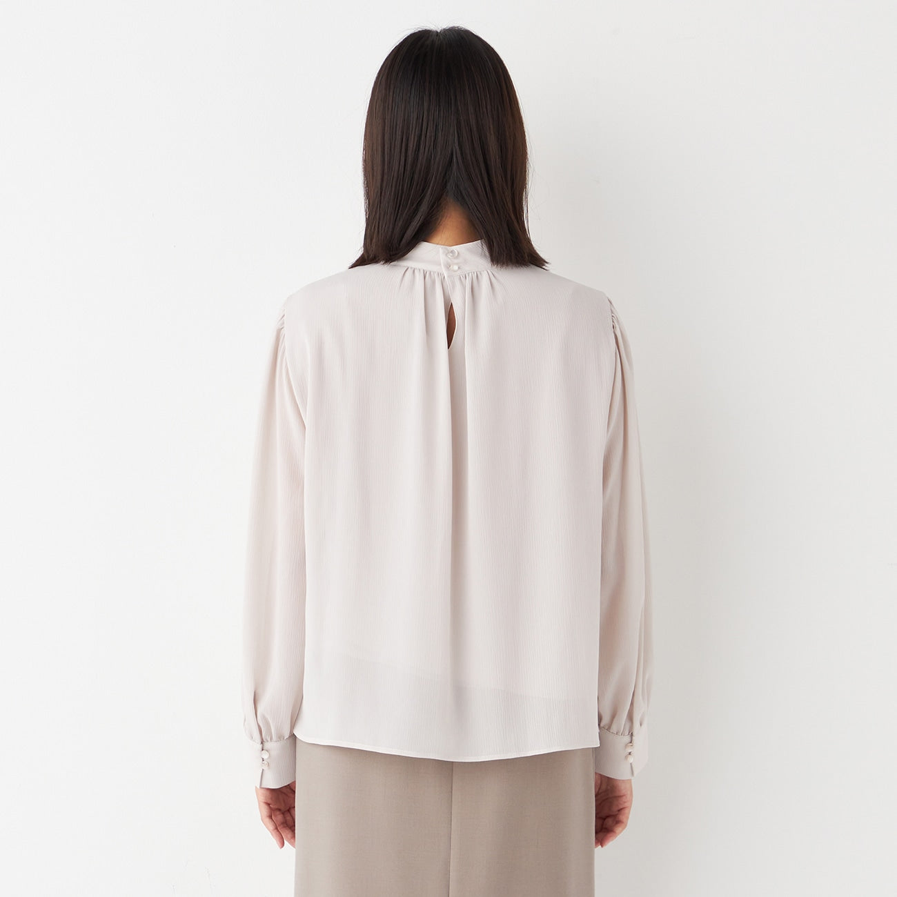 高领剪裁和缝制的梭织衬衫 非常适合通勤使用