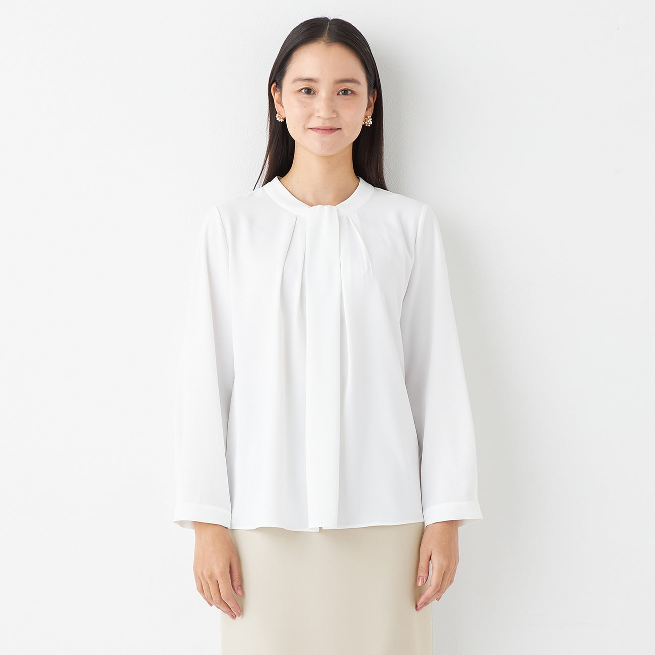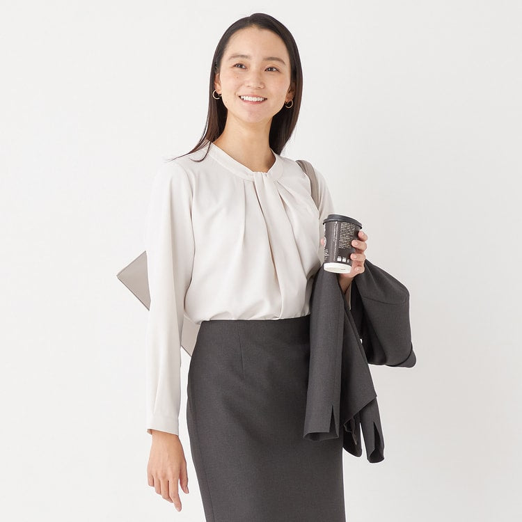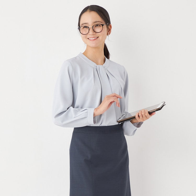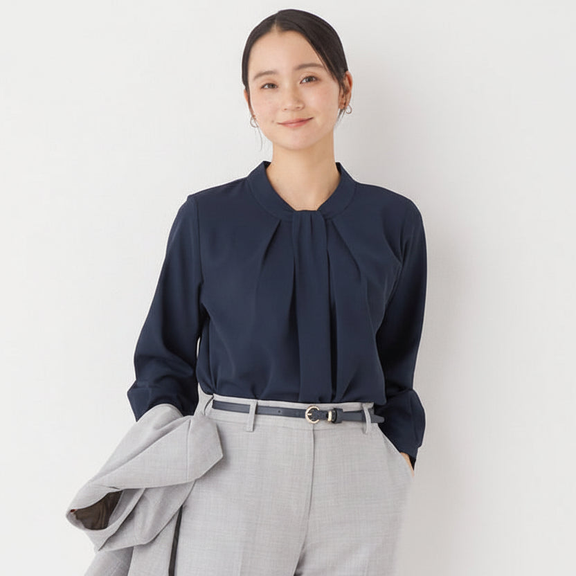 Bowtie style blouse with tuck design for an elegant look.