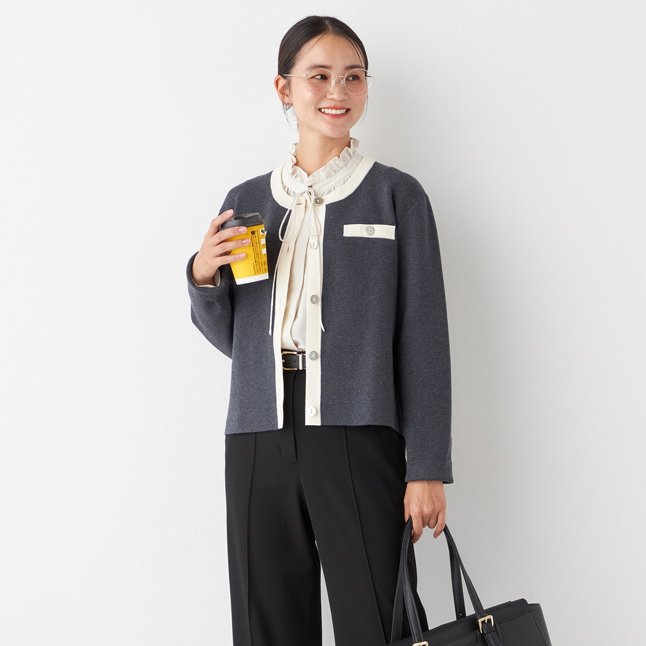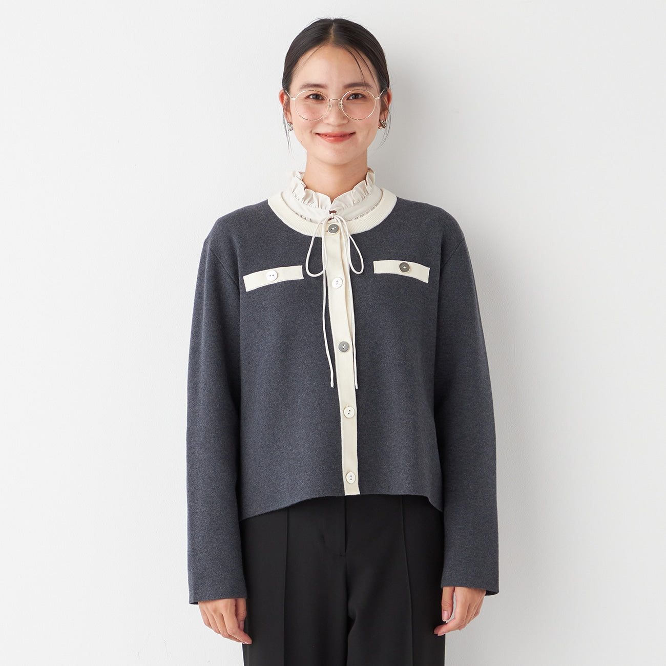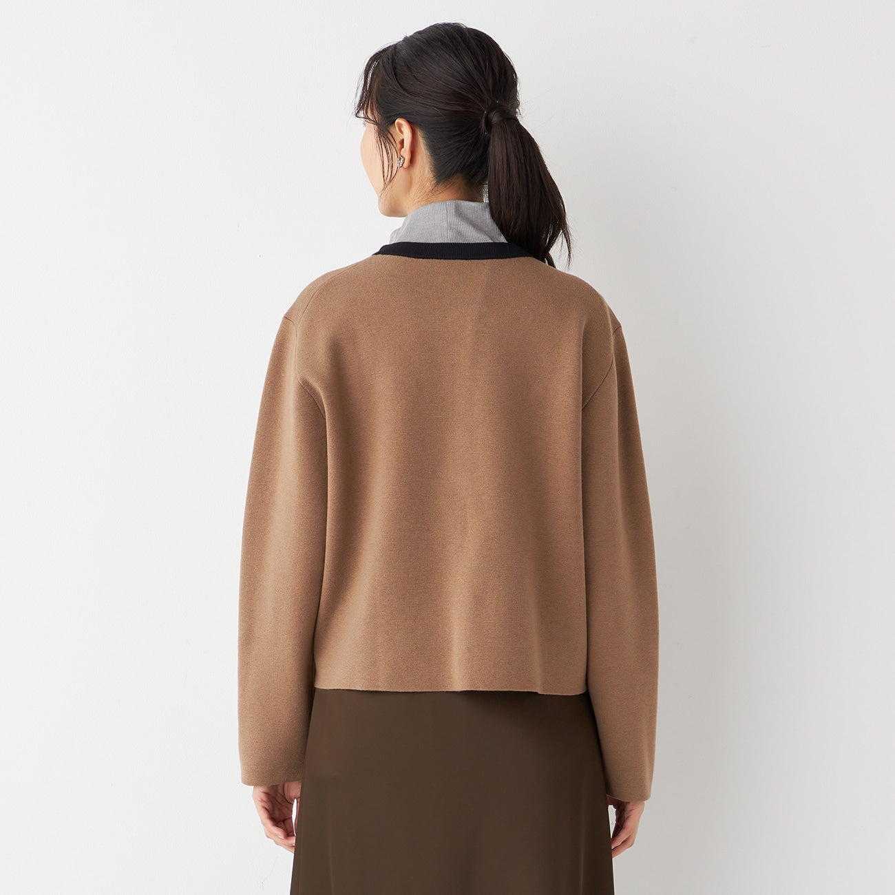 长度稍短的针织夹克,显得小巧整洁