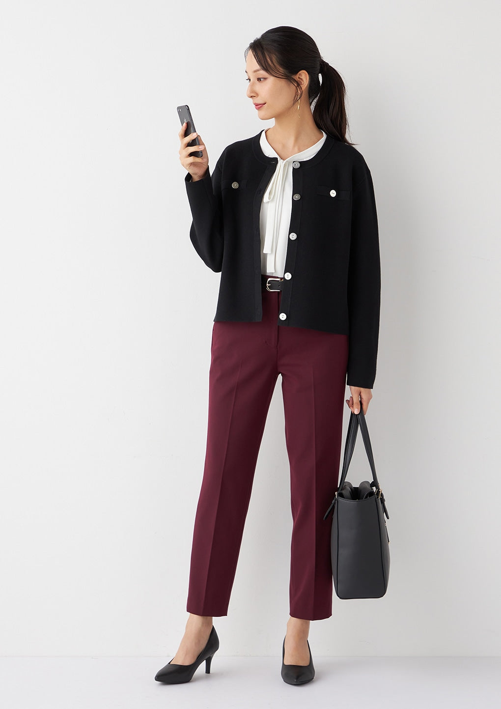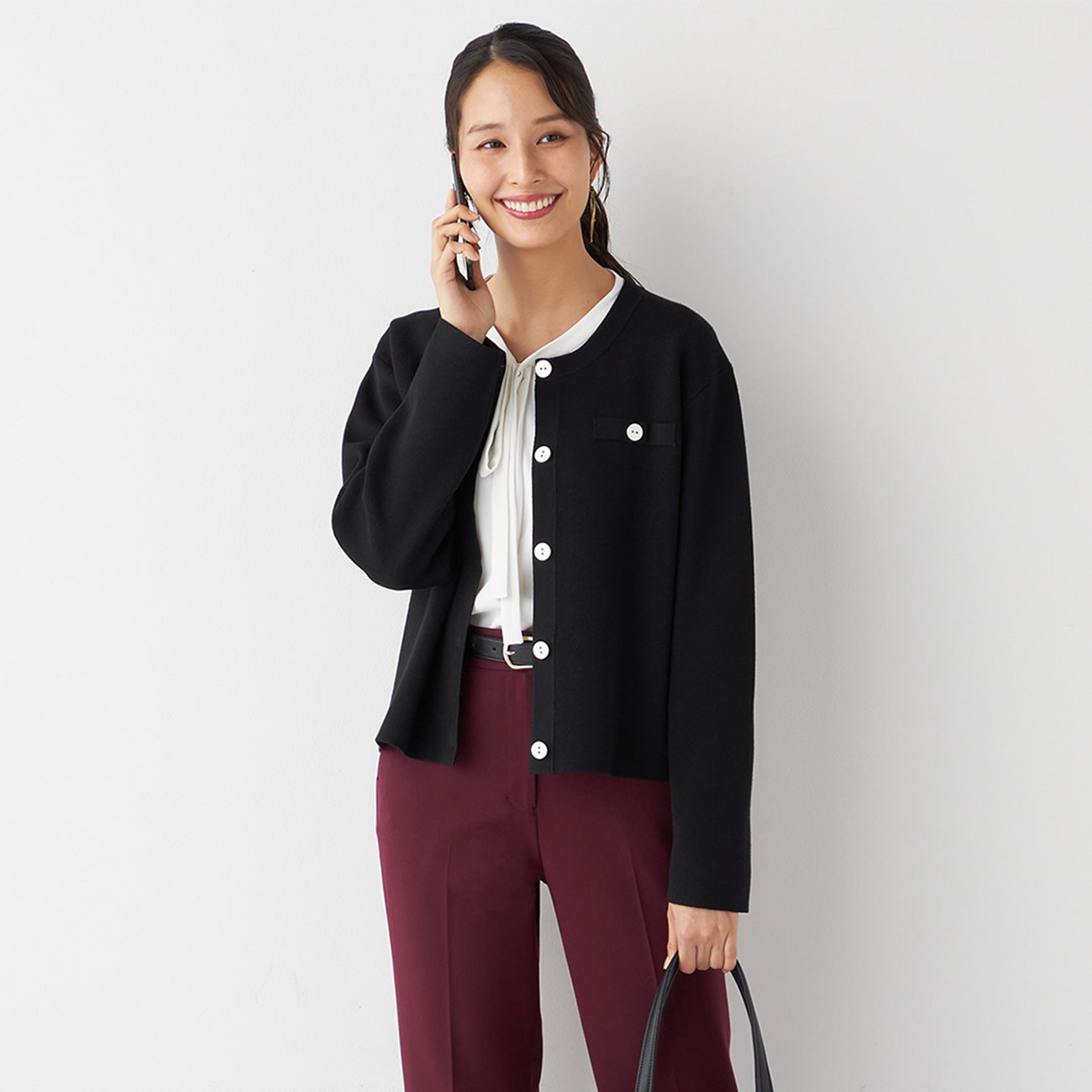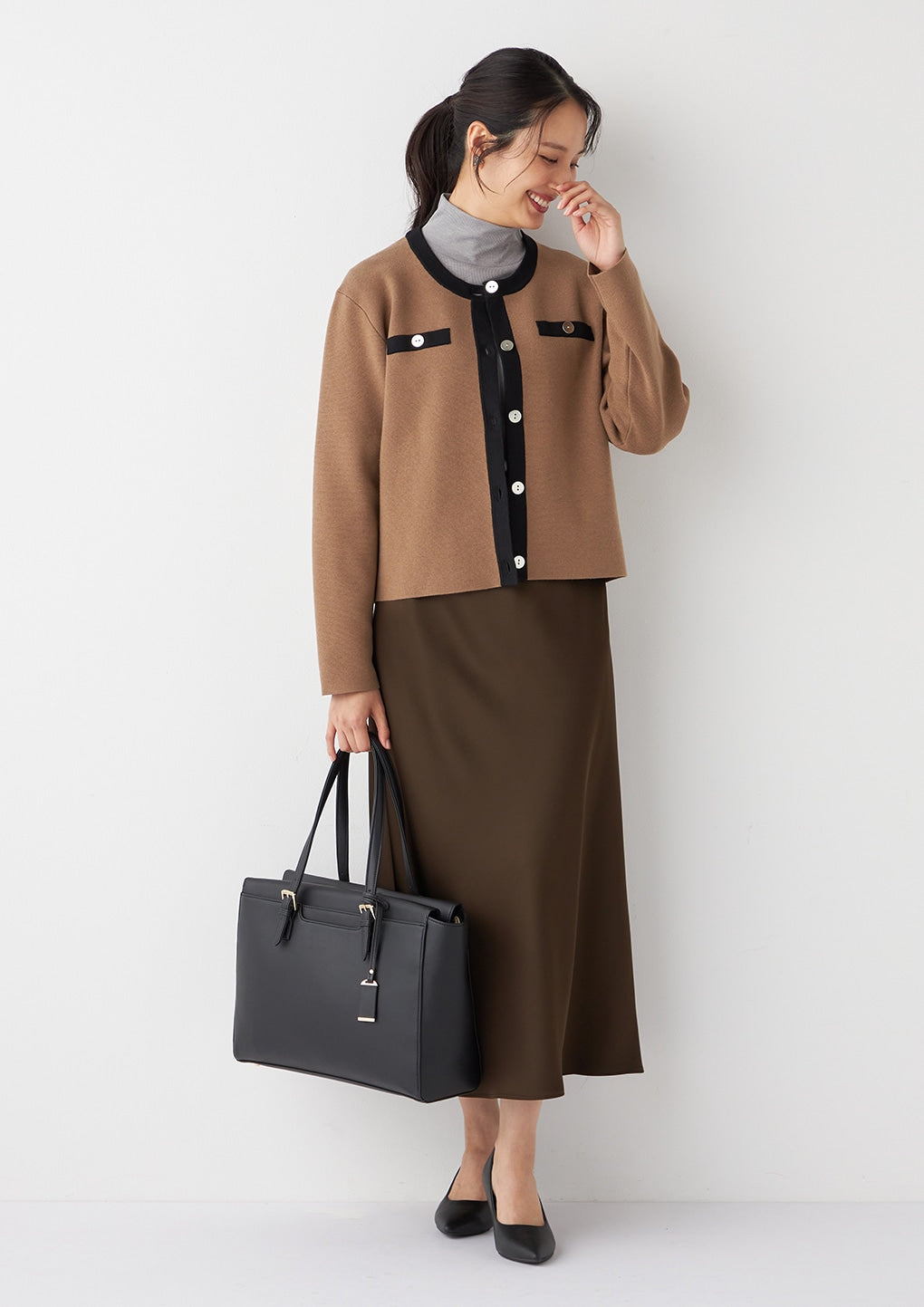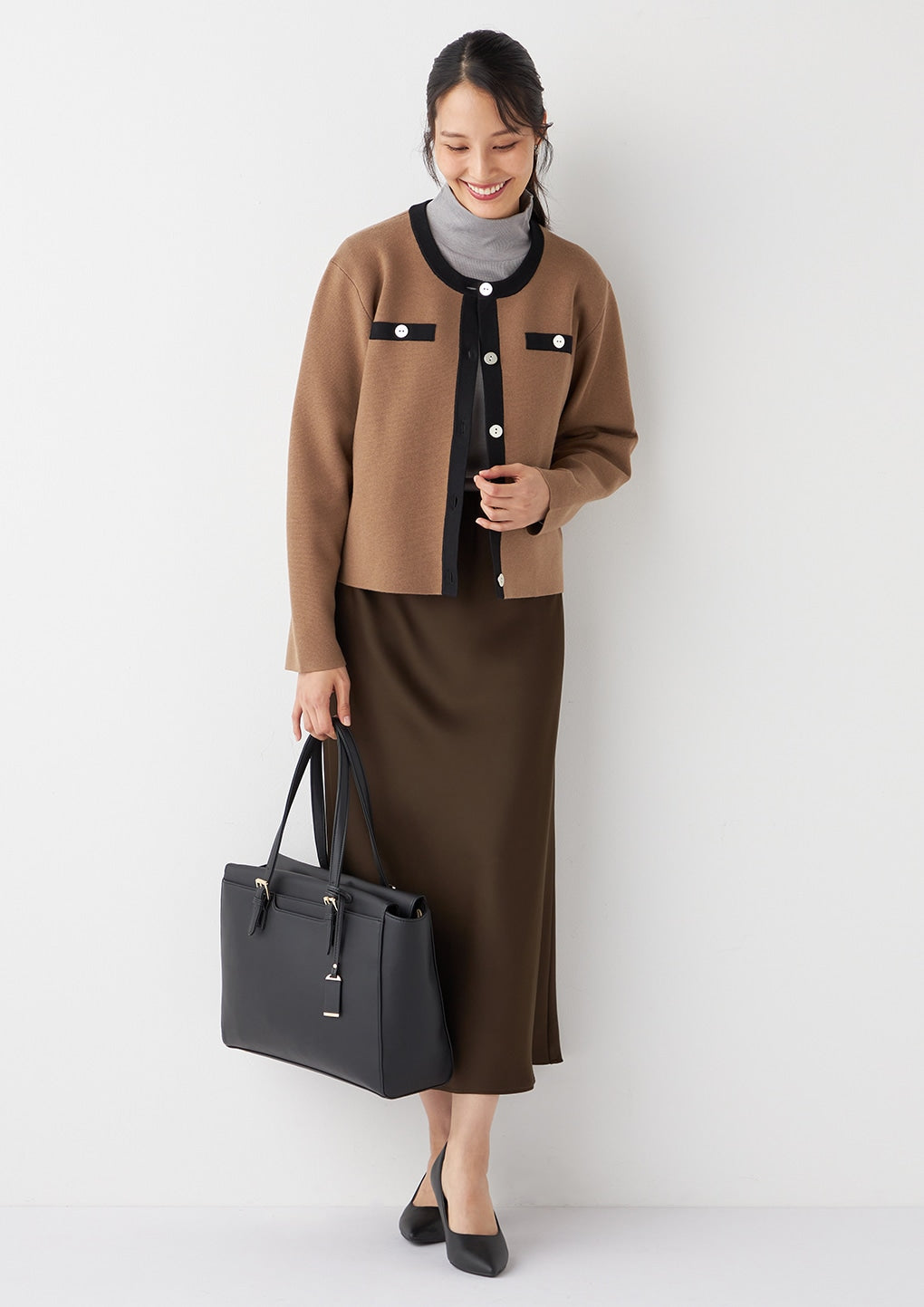 长度稍短的针织夹克,显得小巧整洁