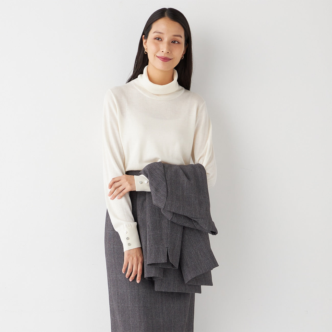 羊毛与丝绸混纺的柔软触感高领毛衣